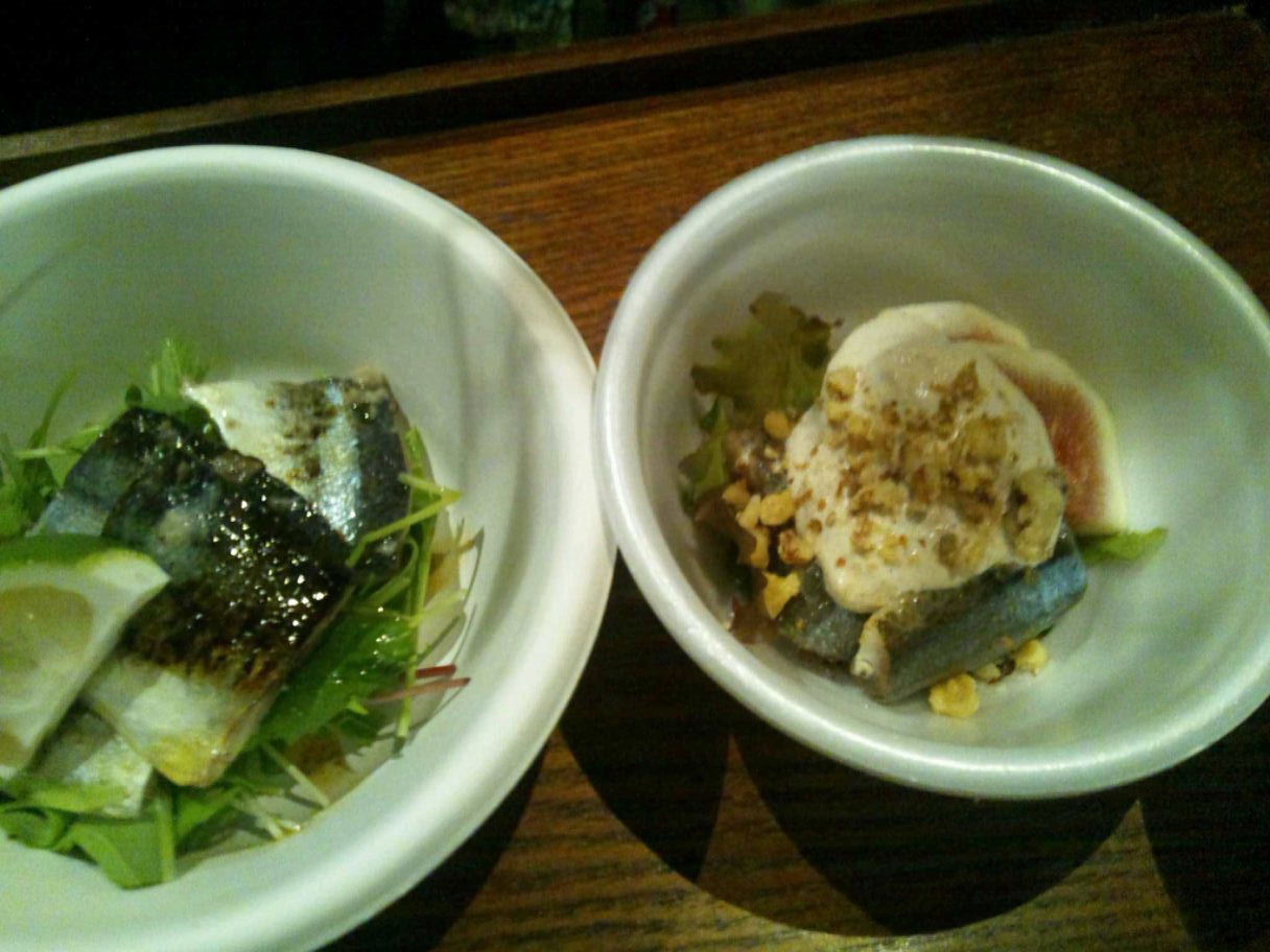 福岡市中央区春吉3-12-24 BLUGE1F 092-761-1160 今日は実に3年振りにこちらのお店へ。 以前行ったときはまだ広島に在住してました。 福岡に美味しいお店がある、と言うことで行ったことが懐かしいものとなりました。 そして気付けば僕もその福岡で住んでます。 不思議なもんだ。 しかし、この日はこちらのお店で秋刀魚の会があると言うことで。 早速行ってみました。 この日はイベントと言うことからか、お客さんが半端なかった。 外までお客さんが居た。 って僕もほとんど外にいたのだけどね(笑)。 さて料理はこちらを。 ってよりお客さんが多くて料理を頂くのも必死です。 炙り秋刀魚のサラダ300円・秋刀魚とイチジクのクルミ和え500円。 ちょっとこういったイベントで時間がかかるからか、生のさんまで作ってあるクルミ和えは秋刀魚の臭みがちょっと気になった。 甘みが強いクルミの旨味がしっかりしていてよく合うのだろうけど、ちょっと残念。 イチジクは甘みとこの食感が素晴らしいね。 炙り秋刀魚は香ばしい皮の旨味があって良いですね。 酸味の強い香りがして旨いね。 野菜もしっかり食べれるから良いね。 炙り野菜300円。 色んな野菜をストレートに焼いただけ。 少しオイルのあるタレで食べている。 これも良いですね。 香ばしいので、好きだなぁ。 野菜を食べてお酒を呑める。 って言う幸せがいいねっ! 美味しかったです。 また次はゆっくり料理を食べたいな。 もうすぐ10周年らしいし。 ご馳走様でした! |
