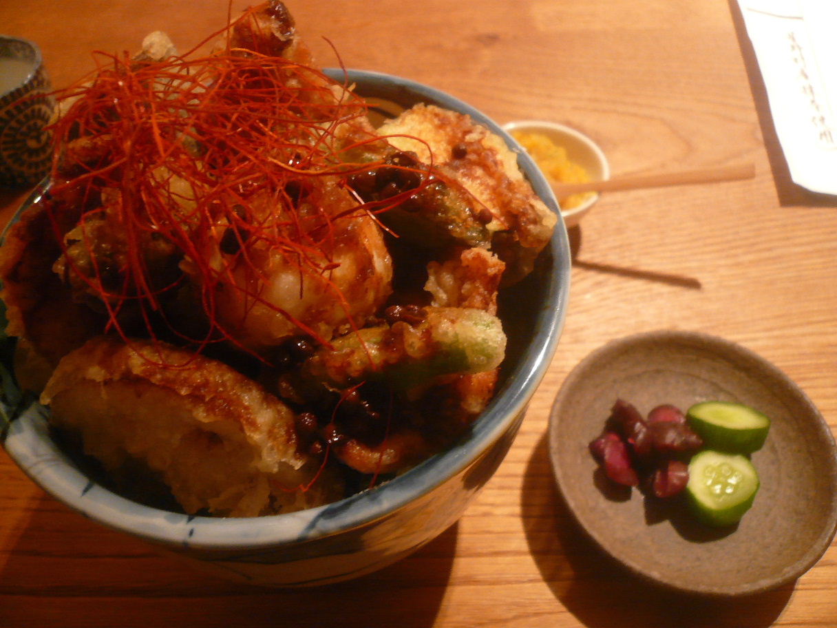 福岡市中央区薬院2-3-30 092-716-2202 今日は以前から気になっていたお店へ。 こちらは福岡で人気の水炊きのお店。 寒くなってきたら家族で水炊きなんて食べてみたいなぁ・・・。 水炊き経験値が低い僕の本音です。 でも今日は水炊きを食べに来たのではなく月替わりのランチを食べに。 こちらは月替わりで楽しい鶏メインの料理が出て来るらしい。 お店はとてもシックで綺麗なお店。 カウンターが奥にあるのでちょっと入りずらいですが、思い切って入ると美しいカウンターがあります。 こりゃなんだか高級店かも。 なんてちょっと不安になりましたが、ランチはそこまで高くなかったです。 それはこちら。 ってまずは前菜ではないのですが、水炊きの出汁が出てきます。 見た目はトロンとしていないけど、ビックリするくらい旨味がある出汁。 臭みなんて全くないけど、旨味がしっかりある。 ついでにこちらのお店のお薦めの柚子胡椒が付いてきたのでちょっと混ぜてみたけど。 口直しに入れるとスッキリして良いですね。 無くても良いぐらいバランスの良い出汁なのでそのままで充分僕は満足。 ってよりお代わりをしてしまいました(笑)。 天丼900円。 今週はこちらのメニューでした。 天丼好きな僕としてはやはり食べておかなくては。 蓮根・ししとう・茄子・そしてたっぷりの鶏天。 上には糸唐辛子、ご飯には海苔がたっぷりのっている。 周りには山椒の佃煮がたっぷり乗っていて良い感じ。 食べると野菜たちは上手に揚げられていて、ホックリと美味しい天麩羅でした。 タレがあまり量はかかっていないのもいいですね。 でもタレはかなり甘く強い味付け。 鶏出汁ベースらしいですが、判らないくらい濃かったです。 鶏天はしっとりとして、でも脂もある美味しい鶏天。 パサパサしすぎていないのが良いですね。 この鶏天が4個も入っていた。 ネックは真ん中にある卵の天麩羅は半熟だと聞いていたのですが、見事に硬めでした(苦笑)。 あと丼が縦に長くて見た目は良いのですがやはり少し食べにくいかな? でもそれ以上に美味しい天丼でした。 あっ、ちなみに山椒の実が良いアクセントだったのと漬け物も美味しかったのもよかったなぁ。 美味しい天丼でした。 きっと良いお店だろうなぁ。 相方が帰ってきたら一緒に水炊きも食べたいな。 ご馳走様でした!