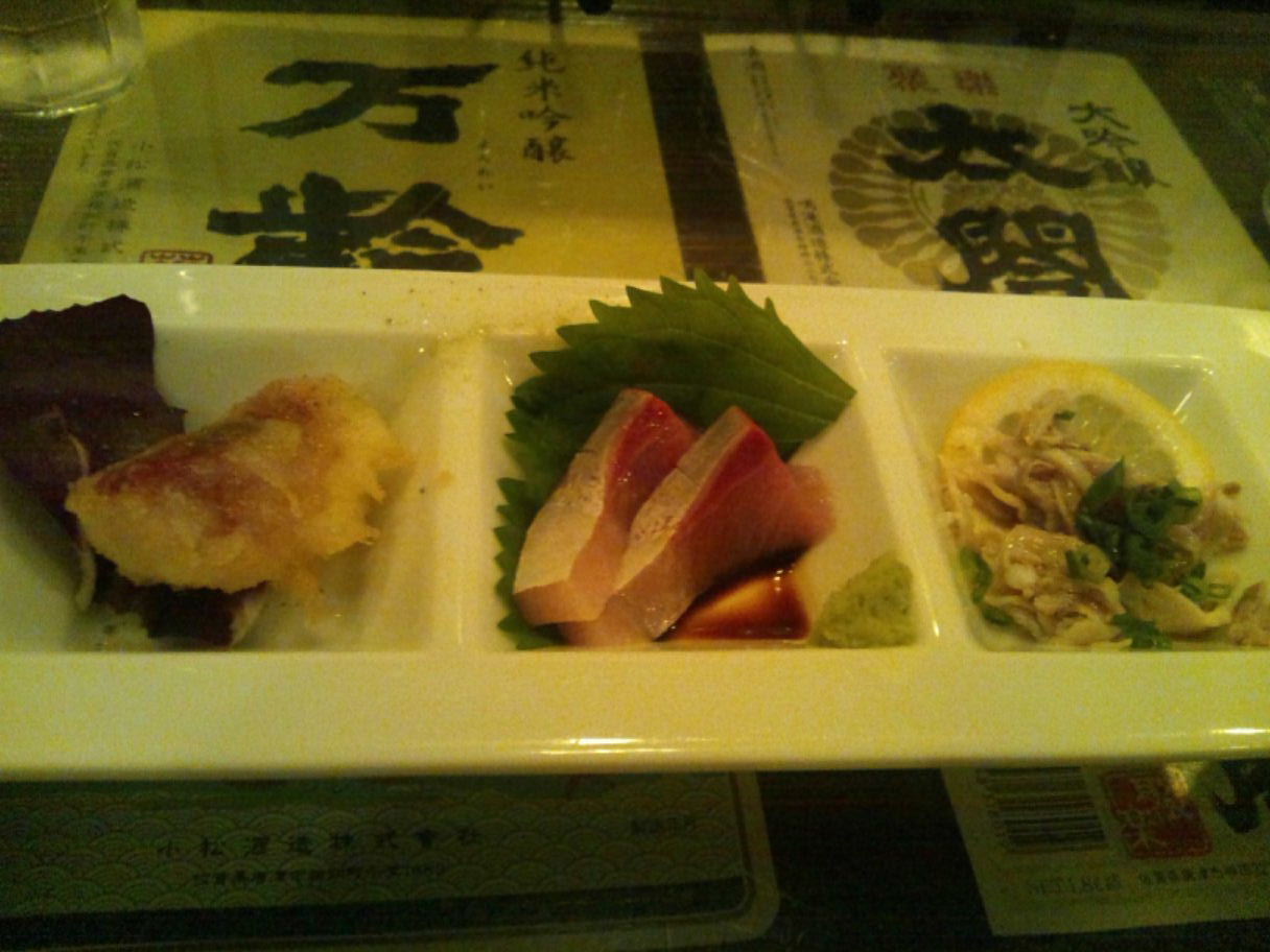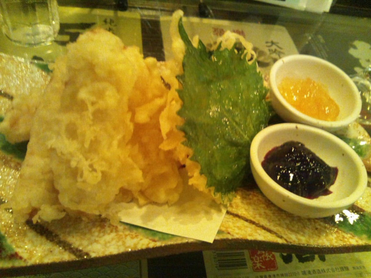 福岡市中央区春吉3-11-19 パノラマスクエアビル博多 2F 092-715-3201 今日は街で送別会があり、その後に少し呑もうかとやってきました。 お店にはいると「ちょっとご無沙汰ですね」と言われた。 記憶に残してもらっている嬉しさと、行けなかった申し訳ない気持ちが混在するものでした。 申し訳ないですね。 お店は相変わらずお客さんが多い。 そしてお酒も何杯か呑んだけど、コンディションも素晴らしいし、美味しいお酒。 そして安い。 お酒は300円くらいからある。 この時期はひやおろしもたくさん。 ここの佐賀酒を楽しむのは、福岡の贅沢な時間かもしれませんね。 さてこちらは料理を。 こんなんを食べました。 つきだし。 イチジクの天麩羅がなんだか秋を感じさせますね。 左のつきだしの天麩羅をかなり楽しんで食べれました。 カンパチの刺身もトロっとしていたし、ささみもあっさりしていて旨い。 ホットしますね。 酒粕の天ぷら600円。 以前も食べたけど美味しいですね。 酒粕の香りがたまらないですね。 ほっこりと香りがする酒粕にホコホコの歯ごたえ。 これに気分を変えてジャムをつけたりして食べるとまた面白い。 マーマレードがよく合ってちょっと癖になる。 不思議に酒にも合うんだよね、ジャムなのに。 美味しかったです。 また行かなくては。 覚えてもらっている間に(笑)。 ご馳走様でした!