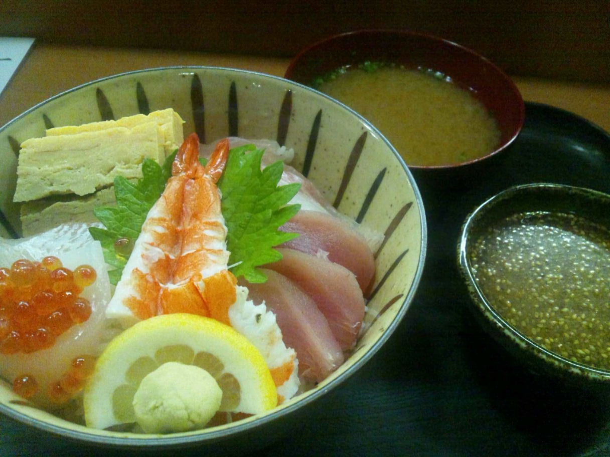 福岡市博多区神屋町2-1 092-283-8900 今日はランチでこちらのお店へ。 僕は福岡に赴任する際に最初に行ったお店がこのお店の前身であった「八千代丸」さんだった。 系列は同じで看板を変えられたようですね。 今はランチもやってくれているんだね。 入ると少し薄暗い店内が気になります。 ちょっと入りにくいんですよね・・・。 きっと魚の環境的には良いんでしょうけど、やっぱり閉塞感があるんですよね。 そこは何とかならないのかなぁ・・・。 さてランチはお寿司や煮物系など魚料理がほとんど。 僕はこちらをチョイス。 海鮮丼750円。 だし巻き系の卵にイカ、海老、いくら、マグロ、鯛など色々とネタが並んでいる。 ほの温かいくらいのご飯に綺麗に並んでいるね。 タレは醤油とゴマをベースにしたものかな? ご飯にも味は付いていないからご飯にもかかるような感じで回しかけてみた。 正直タレはかなり多めに用意してくれているので軽めでも充分だね。 ネタがシャリで悪くなることもないしありがたい。 刺身はちょっと弱い部分もあるけど、このボリュームがあれば嬉しい限りだ。 ありがたいランチだった。 もう少し店に勢いとかが欲しいけど、これは夜営業になったら変わるのかな? ご馳走様でした。