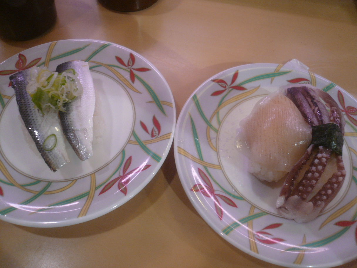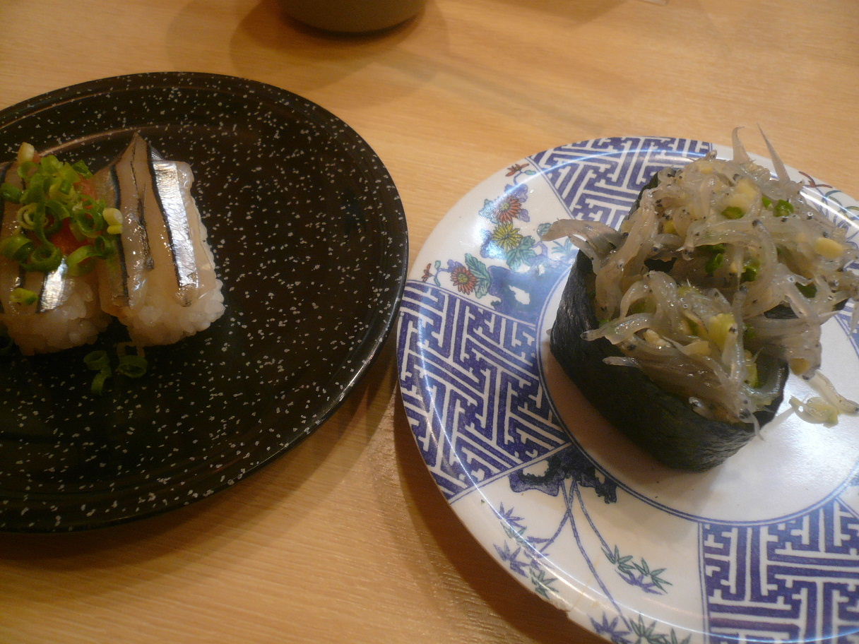 福岡市西区内浜1-7-3 092-894-3737 今日は回転寿司2連チャン。 以前食べましたけど、こちらも105円。 安いねぇ! この日はなかなかお客さんが多い。 でもとりあえず座れました。 とりあえず105円メニューを。 まぁそればかりなんですが。 きびなご・生シラス105円。 こういった物が回転寿司で食べれるとは凄いね。 キビナゴは脂が強いですよ、って聞いたことがあったけど。 とりあえず脂は強くなく、癖のない味だった。 生しらすは塩分が強く、独特ですね。 ネットリとした食感も面白い。 これは楽しいお寿司ですね。 イワシ105円。 身の厚いイワシでした。 こちらは脂もあるし、なかなか旨いね。 これも105円と思うと充分ではないでしょうか? ちょっと葱はいらないけど。 姪浜ロール105円。 サーモンのが上に乗っている。 中にはサーモン、卵、キュウリ、とびっこ、ハマチかな? サーモンの柔らかさが強いね。 そしてマヨネーズがしっかり味わいを支配している。 面白いけど、結構甘さも感じる。 これでかなりお腹一杯になるなぁ。 面白かったです。 525円でお腹一杯になるのが嬉しいです。 ご馳走様でした。