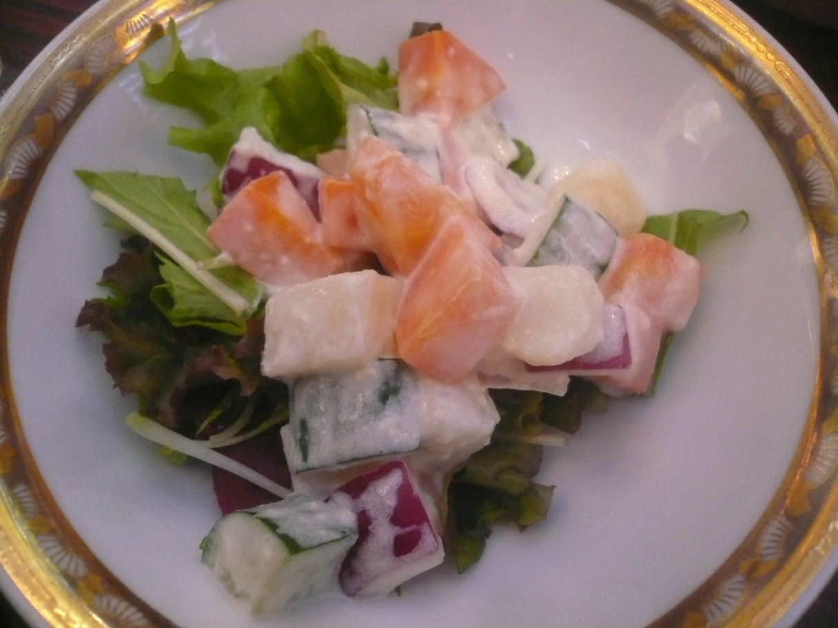 福岡市中央区渡辺通1-1-2 092-714-1111 今日は、福岡で「ふくざけ祭り」というイベントに参加しました。 福岡のお酒を広めてもらおうという地元の産業発展のイベント。 楽しい会でした。 お酒についてはこちらで書いております。 さてこちらでは出てきた料理を軽く紹介。 料理も福岡の地元のものや、お店が出店してました。 まずは有名店のこちら。 「やま中」さんのお寿司2貫800円。 鯛とイカの2貫。 こういったイベントだから仕方ないのですが。 ちょっとネタが乾き気味。 シャリもちょっと硬くなっていました。 これはもったいない。 せっかくの地元有名店。 上手くいけばよかったのですが・・・。 福岡産野菜のサラダ200円。 ドレッシングが酸味と甘みがあって面白い。 キュウリが旨いね。 独得の香りも良いですね。 もう少し量があれば最高なんですが(笑)。 イベント系なのでちょっと高いかな? なんて思えましたがよく考えたらホテル食。 当たり前か! 次のイベントは色々と食べてみたいな。 ご馳走様でした。