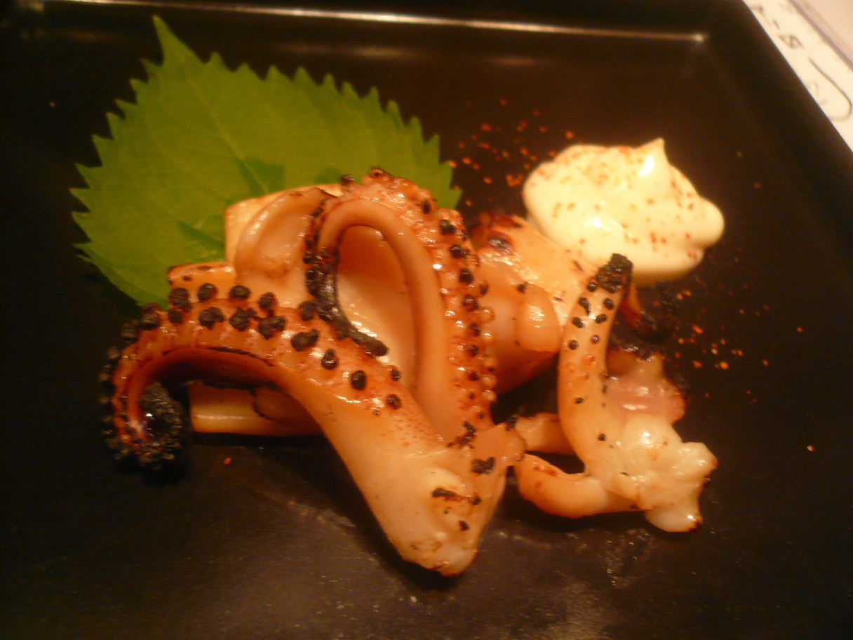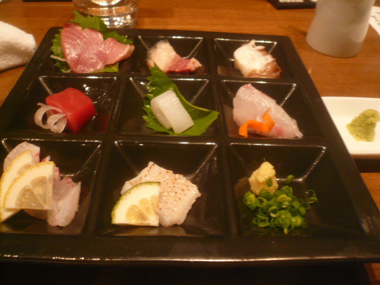 福岡市中央区今泉1-18-28 092-721-4711 今日はふくざけ祭りの後に、こちらに参戦。 こういった大きなイベントがあったのにお客さんはたくさんおられました。 素晴らしいですね。 こちらは色んな県の日本酒があったり、料理もこだわり無く楽しいものがたくさんある。 お酒は奈良・秋田・福岡・佐賀のお酒を楽しんだ。 料理はまずつきだしでやられる。 今回はチーズの味噌漬けとカジキマグロ。 チーズの味噌漬けはこれまでも出ているが独特の風味が付いて旨くなっている。 それ以上にカジキマグロが旨かった。 香りも良いし、酸味も少しあって美味しいカジキでした。 これだけで酒が呑めるね。 そしてこれだけで次に期待できますよね。 イカの味噌漬け500円。 味噌の香りがとてもよく、そして味噌の甘みと渋みが効いていて旨いですね。 また香ばしい香りも加わってこれでもお酒がたっぷり呑めます。 また色合いが良いですね。 黒い盆に瑠璃色のイカ、大葉の緑、マヨネーズの白(酸味の効いたマヨネーズで美味しかった)、唐辛子の赤。 こういった色合いもご馳走ですよね♪ 刺身盛り1,000円。 前回は丸皿で出てきたけど今回は黒い角皿で一つ一つに分けられている。 鰹やタコマグロにイカなんてどれも美味しいですが。 やっぱりビックリしたのは鯨なんて出てくるところ。 ちょっと香りに癖があり面白い感じですよね。 どれも1切れずつですが美味しかったです。 そしてこちらも色合いが美しいですね。 黒の皿というのも不思議な感じですよね。 美味しい料理とお酒でした。 またきっと行くのだろうなぁ。 次は秋らしい料理が沢山食べれたらいいな。 ご馳走様でした!