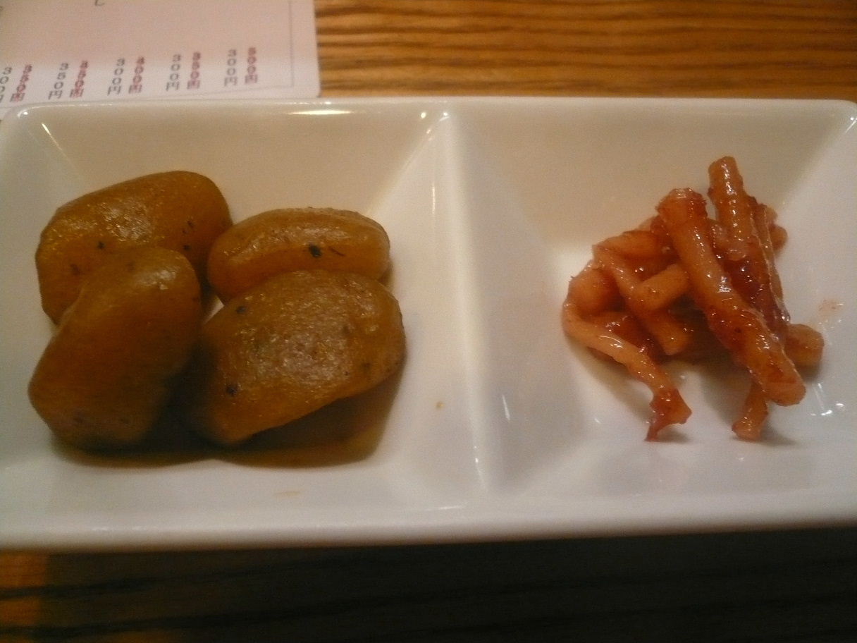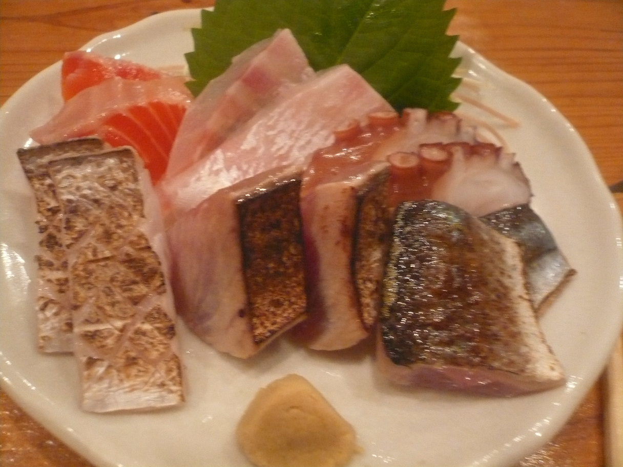 福岡市博多区須崎町5-7 092-282-4030 今日は、会社からわりと近くにあるうどん居酒屋へ。 以前から気になっていたのですが、夜だけの営業と言うことでなかなか行けず。 やっとふらり行けるようになりました。 お店はわりと小さめですがお客さんは一杯。 とても人気があるようですね。 メニューには料理が沢山あって迷うくらいです。 これだけ出されると面白いですね。 まずは居酒屋の定番から。 焼きポテトサラダ350円。 ちなみに普通のポテトサラダもあったのですがメニューが多すぎて気付かず(苦笑)。 表面は焦げ目が付いてあって香ばしく温かい。 でも中は冷たいポテトサラダ。 面白い取り合わせですね。 僕個人としてはほの温かいくらいの方が嬉しいのですが、これも狙いなのかも知れませんね。 ポテトサラダとしてはかなりノーマルというかマヨネーズの味わいもしっかりあって。 なんだかホットする味わいで安心して食べれました。 刺身盛り500円。 500円という安さなのでどんなのが出るんだろう? だと思ったら、炙ったものなど色々と手を加えてくれた。 ネタは秋刀魚、鰹、イサキ、タコ、鯛。 あと赤い魚は何だっけなぁ・・・。 種類も沢山あるし美味しいですね。 値段を考えると手も沢山加えてくれていてとても嬉しい。 秋刀魚とかは皮目の香ばしさがたまりませんね。 これでまたお酒が呑めます♪ 〆はひやひや450円。 甘く、ちょっと煮干しかな? なんだかふんわりとした汁が特徴ですね。 うどんはよく〆られているからかしっかりした腰。 博多うどんとはまた違うね。 さらさらと食べるうどんかと思ったらしっかりしたちゃんとしたうどんで驚く。 流石うどん居酒屋さんだね。 ココは良いですね。 ちょっと人と行っても沢山食べれて良いかも。 次は温かいうどんで〆てみたいな。 ご馳走様でした!