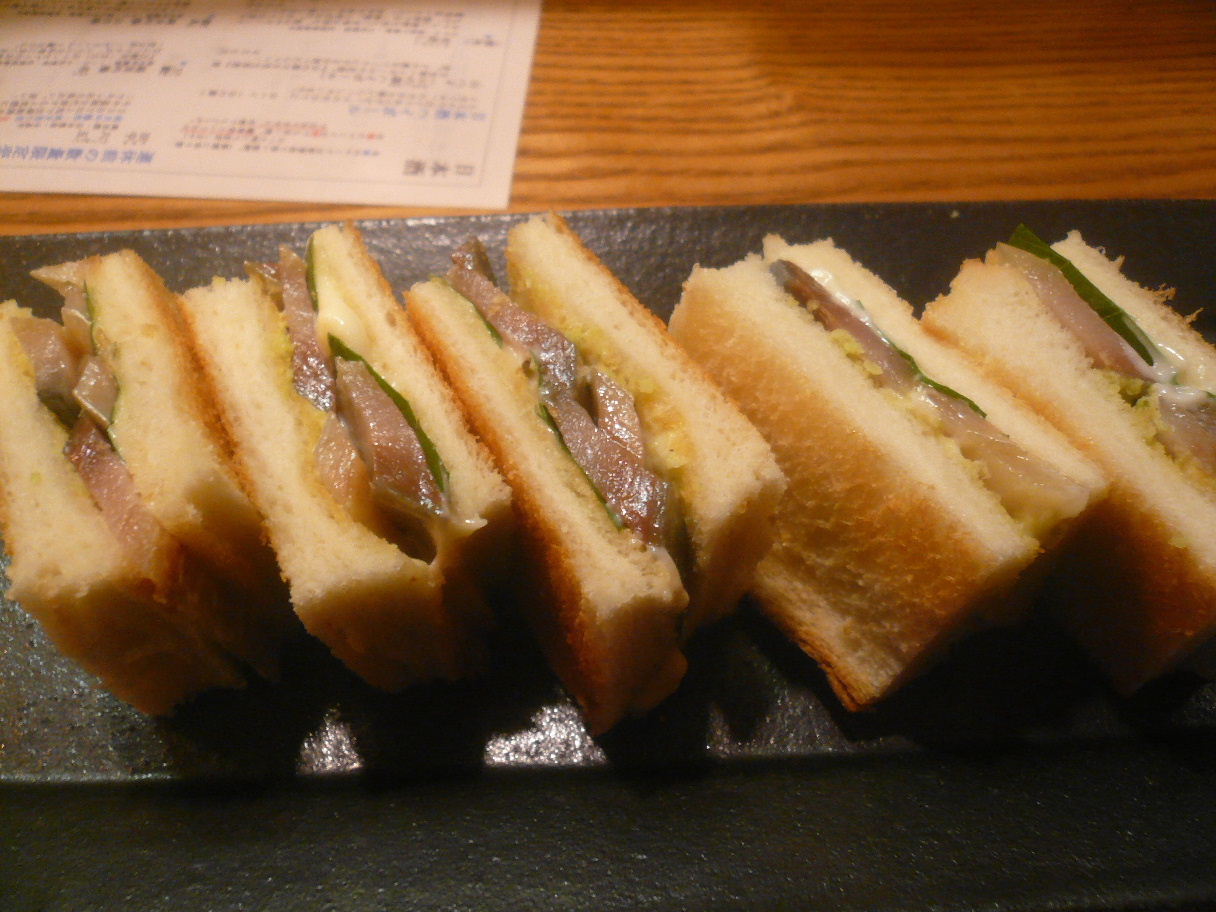福岡市中央区渡辺通2-3-32 092-771-1339 今日は「住吉酒販」さんのイベント後に立ち寄ったこちらへ。 この日は15時OPENだったのでひょっこり15時に。 以前から何度か立ち寄ろうとしても満員で入れなかったんですよね。 久々に入れました。 ってより入ったときは誰もお客さんがいない独り占め状態(笑)。 龍勢なんて呑みながら料理を待つ。 この日はちょっと値段も安くなっていたので(連休前で安売り状態)料理をメインに頂きました。 まずはつきだし。 こんにゃくとごぼうの梅酢漬和えかな。 こんにゃくはちょっとピリ辛に煮られていた。 素朴だけど、こういった料理が好き。 ごぼうは周りに聞こえるくらいシャキシャキした歯ごたえが響いた。 僕の食べ方が悪いのか(苦笑)? でも酸味の効いた美味しいごぼうだった。 万願寺唐辛子の炙り。 確か350円くらいだったんじゃないかな? 香ばしく炙られた万願寺唐辛子が甘くて旨い。 ・・・はずだったのだけど一つ目からとんでもなく辛いのに衝突。 そして食べている時に「たまに辛いのがあるから気をつけてください」とのありがたいアドバイスを(苦笑)。 すぐにお冷やを出してもらいました。 もちろん、甘い美味しい万願寺唐辛子が大半でしたよ。 ジューシーだし旨かったです。 サバ薫サンドイッチ。 多分850円くらいになってたと思う。 サバは薫製となっているけどかなり半生状態で美味しいサバですね。 香りもよく素晴らしいのですが、そこに香ばしいパンとマヨネーズ。 また大葉がいいアクセントになっていくらでも食べれる感じ。 こりゃたまらんし、想像以上にパンとの相性が良いな。 これはやられました。 ちなみにあまりお酒をココでは書かないことにしているのですが。 旨かったので記念に。 こちらは「のみりんこ」と言う味醂のソーダ割り。 かなり甘みが強いのですが、身体に優しそうなありがたい味。 特にちょっと疲れていた僕には助かった。 これは癖になるな。 次もあったら頼みそう。 美味しいものを沢山頂きました。 また次も美味しいお酒と共に頂きたいな。 ご馳走様でした! PR
