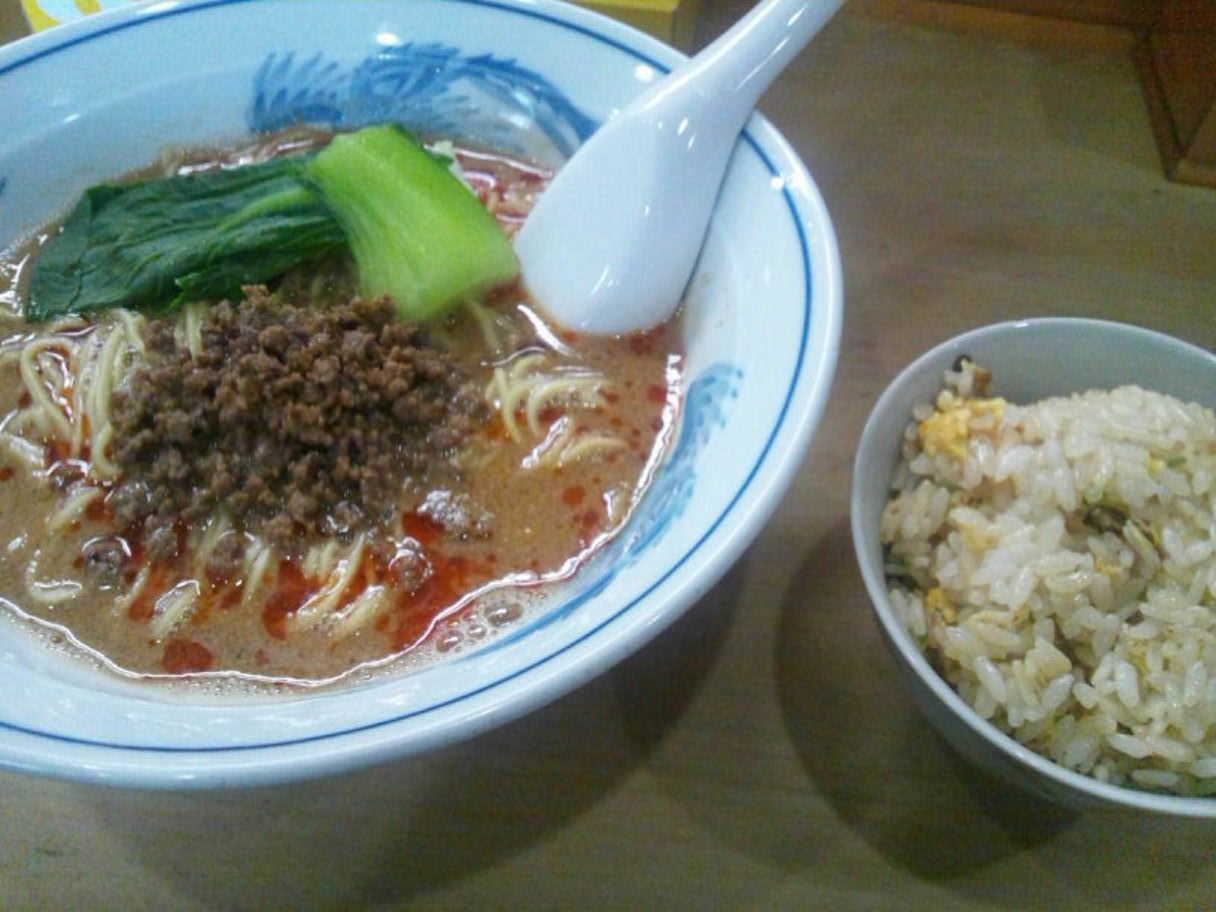 福岡市博多区大博町12-19 092-272-1883 今日はこちらのお店へ。 以前から担々麺を思いっきり表に出していたので気になっていたんですよね。 名前からは担々麺のお店とは思えませんが、幟とかは担々麺一色なのでわかりやすいですよね。 入るとお店にはお客さんが一杯! メニューを見ると中国料理屋丼物もあるね。 横の人の野菜炒め系のメニューも旨そうだったしね。 でも僕はこちらをチョイス。 やっぱり看板メニューから! 担々麺セット800円。 担々麺と半チャーハンセット。 担々麺はゴマの香りとラー油の香りが良いですね。 食べてみると担々麺は辛みが穏やか。 ゴマもわりと穏やかな方かも知れません。 下地のスープが軽く、ちょっと担々麺としては柔らかな雰囲気の物ですね。 最近しっかりベースでゴマに負けない出汁が流行っているけど。 やっぱり重いのでこういったバランス系の担々麺を食べると安心しますね。 個性的ではない様に感じで逆に個性的。 狙ってる気がします。 チャーハンは旨いね。 僕はチャーハンがあまり好きではないのは炒めるためにかなり油を吸っていてちょっと後半きつく感じるのですが。 炒め方が旨いのかその重さは最後まで無かった。 パラッとしすぎていないのに食べやすいチャーハン。 これは好みです。 次はチャーハンを一人前で食べたいくらいでした。 人気店は流石ですね。 ご馳走様でした!