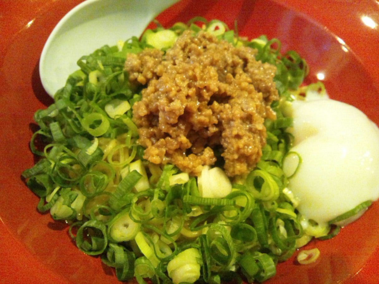 福岡市中央区舞鶴3-8-1 092-724-9314 今日は最近OPENしたお店へ。 福岡でも拡がりつつある汁無し担々麺をメインにしたお店。 お店のメニューを見ると汁無し担々麺があり。 四川担々麺があり。 中華そばがありと麺料理屋さんとして昼はやるみたい。 夜は色々居酒屋メニューもあったね。 お話をしていると、広島の汁無し担々麺も勉強したらしい。 目指すところは「竜胆」さんらしい。 あれっ、確か『SAKABAクッカー』と同じだ。 ってよりメニューもよく見返すと夜の感じはよく似ている。 関係があるのかな? さてまずは汁無し担々麺から。 汁無し担々麺Aセット600円+150円。 汁無し担々麺に温泉卵とご飯のセット。 辛さは選べるので思いっきり辛くしてくださいと言ったのですが。 「最初の方なので2辛くらいにしてください」 とのこと。 辛さの基準が山椒系だと言ったので大丈夫なんだけどな。 なんて思ったけど、バランスの問題もあるのでこちらがいいのかな? メニューにはよく混ぜてと言われているけど最初は軽く混ぜて。 そして温泉卵は潰さずにしながら食べてみた。 ちょっと肉のほぐれ具合が悪いのですが、麺は綺麗にほぐれていて食べやすい。 食べてみると、山椒の香りや辛みは穏やか。 油は強くないけど、その油で辛みがマスキングされているのかな? 唐辛子の辛みはやはり無い気がする。 しかし辛みが弱いとコクの弱い担々麺はちょっと寂しいかな? その分挽肉に味が強めについているのだけど、やはり少し弱く感じる。 そこに温泉卵を加えたらさらにまろやかに。 ご飯は少なめ。 高く感じるかなぁ。 でもね。 OPENしたてだし、何となくここから盛り返してくれそうというか再メンテナンスしてくれそうな気がする。 これはタダの経験値からの話だけど。 次はもう一度汁無し担々麺か四川担々麺かな。 もう一度行ってみたいな。 ご馳走様でした。