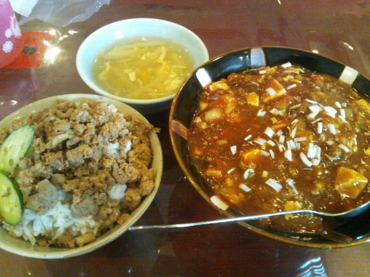 福岡市西区姪浜駅南1-7-20 092-882-4567 今日は、娘とお留守番なので二人でランチ。 さて何処に行こうかなとウロウロしていて見つけたお店。 姪浜駅前にある台湾料理屋さんです。 お店はガンガンクーラーが効いていて涼しいのがありがたい。 メニューを見ると色んな料理があるけど、台湾料理も沢山あってよくわからない。 まぁまずはお薦めメニューを書いてある物を2種類頼みました。 色々考えてね。 麻婆丼500円+滷肉飯300円。 麻婆丼は台湾料理と言うことなので軽く辛くしてもらおうと思い注文。 昨日かなり辛い物を食べてクラクラしてたしね。 麻婆丼は餡がたっぷりあるので丼にぴったしですね。 わりとジャンクな味わいで辛みも結構あった。 豆腐も柔らかいタイプでご飯をかきこむのにピッタシ! 滷肉飯は娘用のご飯。 甘辛の味付けでご飯に合いますね。 辛みとかもないので食べやすいですね。 キュウリは娘は苦手だったらしい。 温かいキュウリになってたからね(僕は苦手ではない)。 スープは麻婆丼に付いていた。 野菜の味がしっかりあって、乾物の香りがもの凄く強い物。 少し冷めていたけど個性的なスープですね。 ただ麻婆丼と共に少し辛みがあってかぶるかな? でも安いのにしっかり量があって嬉しいランチでした。 次は日替わりも食べてみたいな。 ご馳走様でした。 PR
