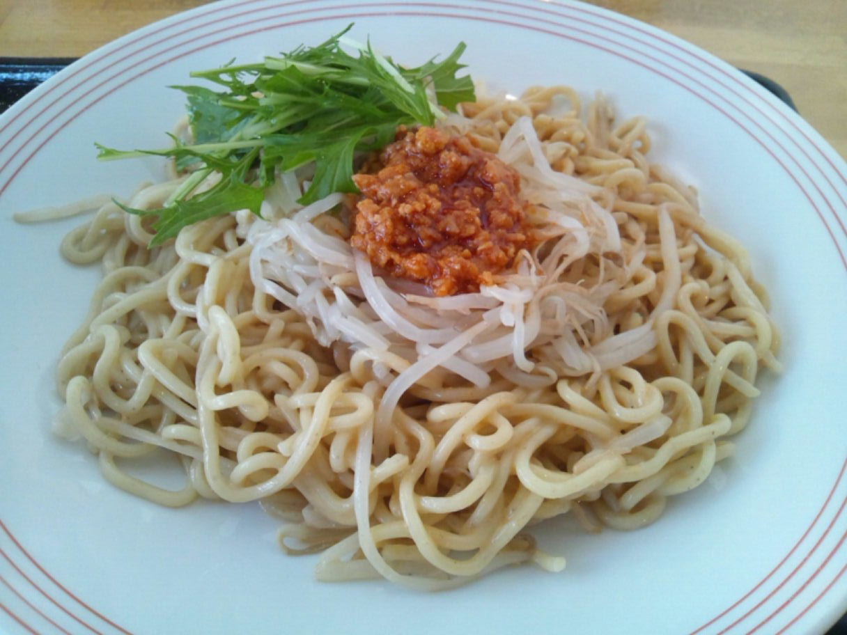福岡市西区橋本2-15-3 092-811-9500 最近暑いですね。 それもジメジメと。 やっと夏らしくなってきたと言うべきでしょうか? ってことでそろそろ涼しくなるようなメニューを求めてまずはこちらのお店へ。 やっぱりこちらと言えばチャンポンですよね。 野菜たっぷりでしかもその野菜も決して悪くなく、安い。 庶民とサラリーマンの強い味方です。 しかしこの暑さではちょっとねぇ・・・。 ってことで季節限定のこちらのメニューをチョイス。 からまろ冷やし麺490円。 肉味噌ともやし、水菜とちょっと丸い麺が載っています。 タレはゴマだれでちょっと冷やし担々麺風ですね。 食べてみると唐辛子と山椒の辛さはあまり強くなくするすると食べれる辛さ。 ゴマがしっかり効いてて濃厚で甘く感じます。 でもこちらのお店の一番の売りの美味しい野菜が少ないのはちょっと残念かな。 もやしとかはいい物を使ってると思いますがヒゲはとってもらえたら嬉しいかも。 でもこの値段はありがたいですよね。 やっぱりこちらは汗をかきながらちゃんぽんを頂くのがベストかも。 野菜たっぷり頂きますか! ご馳走様でした。