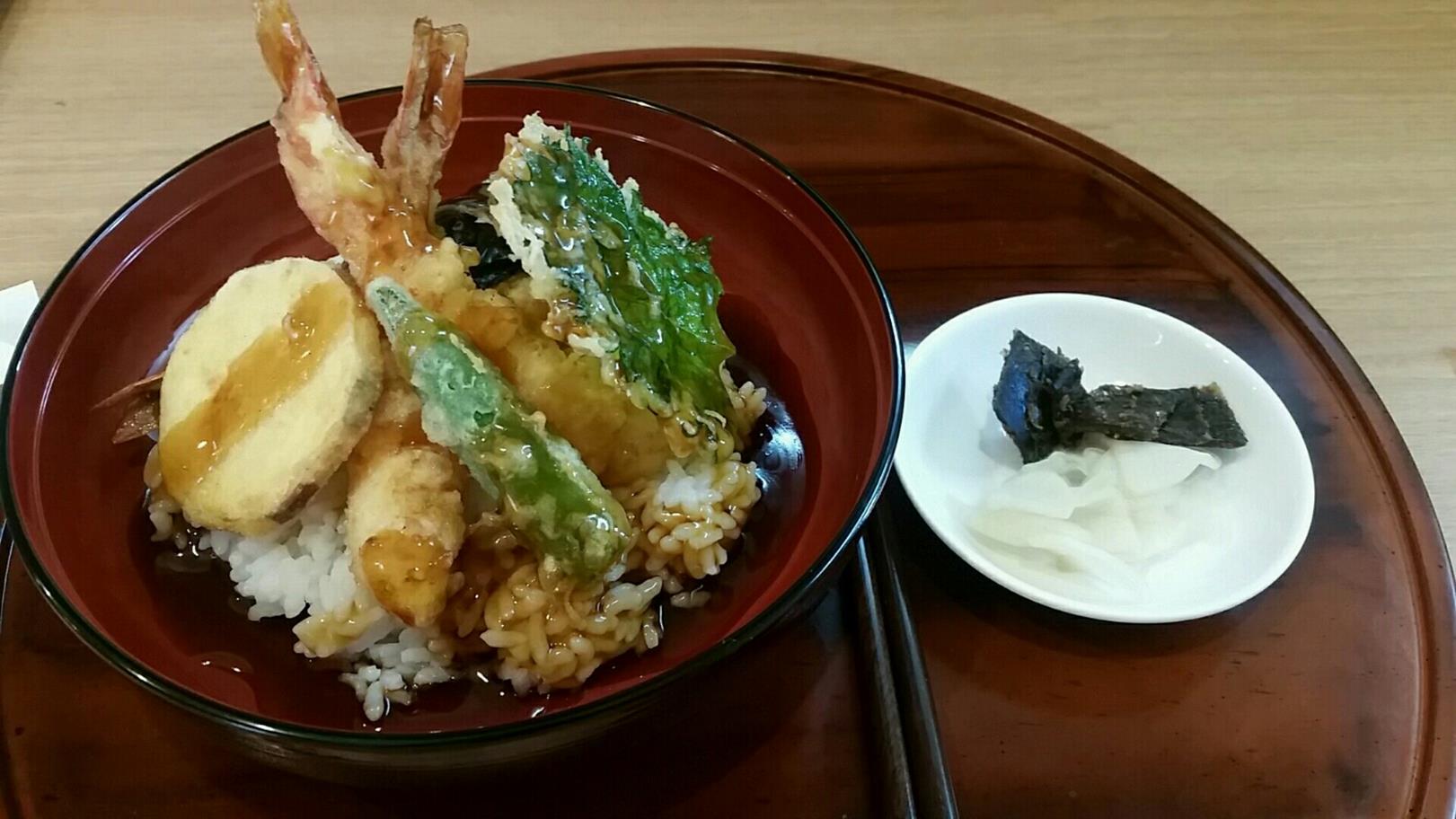 福岡市西区石丸3-13-18 092-883-3433 今日はとことこと歩いていると見つけたお店。 少し前に車で通ったとき、あれ? こんなところに天ぷら屋さんなんてあったっけ? なんて思っていたのですが、今回はまた前に通ったので。 せっかくなので行ってみた。 表通りからは扉がなく、裏手に回ると入り口がある。 とても分かりにくいな(笑)。 お店はカウンターが少しにテーブル席かな。 大将とその奥様かな? あと対象にそっくりの若い方の3人で切り盛りされていた。 まずはこちらをチョイスしてみました。 天丼918円。 天丼に漬物、そして味噌汁が後で出てきた。 天丼は来てびっくりしたなぁ。 丼タレがよもやの餡かけ状態で出てくる。 僕は餡かけのタレの天丼は見たことがないな。 実際にこのタレハ結構甘めに仕上がっていて、かなり個性的。 ご飯に甘いタレはよく合いますねぇ。 天婦羅は海老が2匹というのは嬉しいですね。 熱々で出てくる天丼は特別感はないけど、さすがに美味いな。 味噌汁もなかなか美味かったし抜かりがないお店かな。 美味しかったです。 最近には天ぷら屋なのにから揚げもあるそうなのでそれも興味があります。 どんなんだろう? ご馳走様でした。