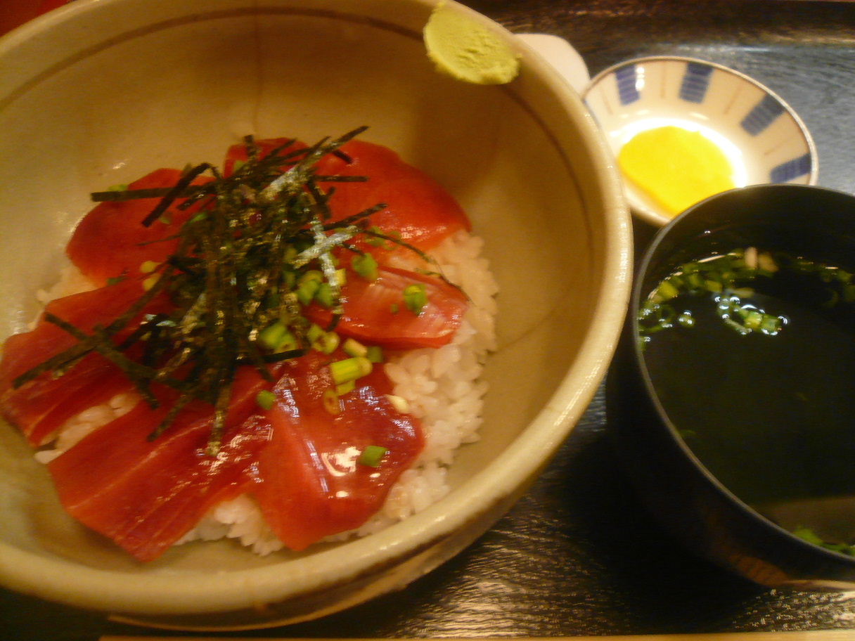 福岡市中央区舞鶴3-8-1 092-725-8558 今日はマグロメインの居酒屋さんへ。 いやぁ、マグロは好きなんですけどね。 あまり食べないんですよね。 ってのも当たり外れってでかいじゃないですか。 だからあえてチョイスはしないようにしてます。 でも専門店なら美味しいのでは? なんて思って入ってみました。 メニューは日替わりから葱鮪ラーメンなんて面白い物もあった。 でもまずマグロのランチならこちらでしょう! 鉄火丼590円。 綺麗な鉄火丼が上に乗っています。 マグロは赤身のヅケかな? それもさらりと漬け込んだ感じでした。 ちょっとスジが気になりますが、独特のあのマグロの香りがあって美味いですね。 あとご飯はそこまで温かくないのも嬉しい。 熱があまりマグロに通らないから嬉しい。 でももう少しボリュームが欲しかったかな? この鉄火丼と味噌汁だけでは少しお腹が空きます。 まぁ安いし贅沢言い過ぎかな? でも良い店でした。 お店には素晴らしいお酒が沢山常温で置かれていました。 かなり日本酒が揃っているのでいてみたいな。 ご馳走様でした。