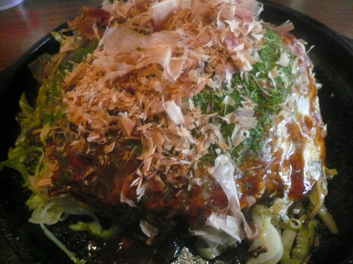 福岡市中央区長浜2-5 092-732-8439 今日は、こちらのお店でお好み焼きを。 未だにお好み焼きが食べたくなるんですよねぇ。 やっぱり広島が長かったからかな。 入るとこぢんまりとした雰囲気。 鉄板とかは目の前には無く、食べるときに持ち運びの出来る鉄板で食べるお店。 ランチには食べ放題のおにぎりと味噌汁、小鉢とミニお好み焼きのついたセットがある。 650円と安価だけにそちらにしようかと思ったけど、まずはこちらをチョイス。 肉玉ソバ680円。 ノーマルサイズのお好み焼きは焼いているところは奥なので見えないけど。 キャベツは結構厚めに切られている。 そして層になっているソバがけっこう量があって、そして若干高く盛られていて食べにくいかな? そして鰹節が乗っているのはあまり見ないよね。 食べてみるとキャベツがかなり大きめなので食べ応えがあるね。 ソバも多くてボリュームがしっかりあるのが嬉しい。 ソースはちょっと甘めだけど、量もそこまで多く掛かっていないからありがたい。 なんだか食べた感じは懐かしいタイプのお好み焼きでした。 ノスタルジーに浸れるお好み焼きでした。 美味しかったです。 ご馳走様でした。