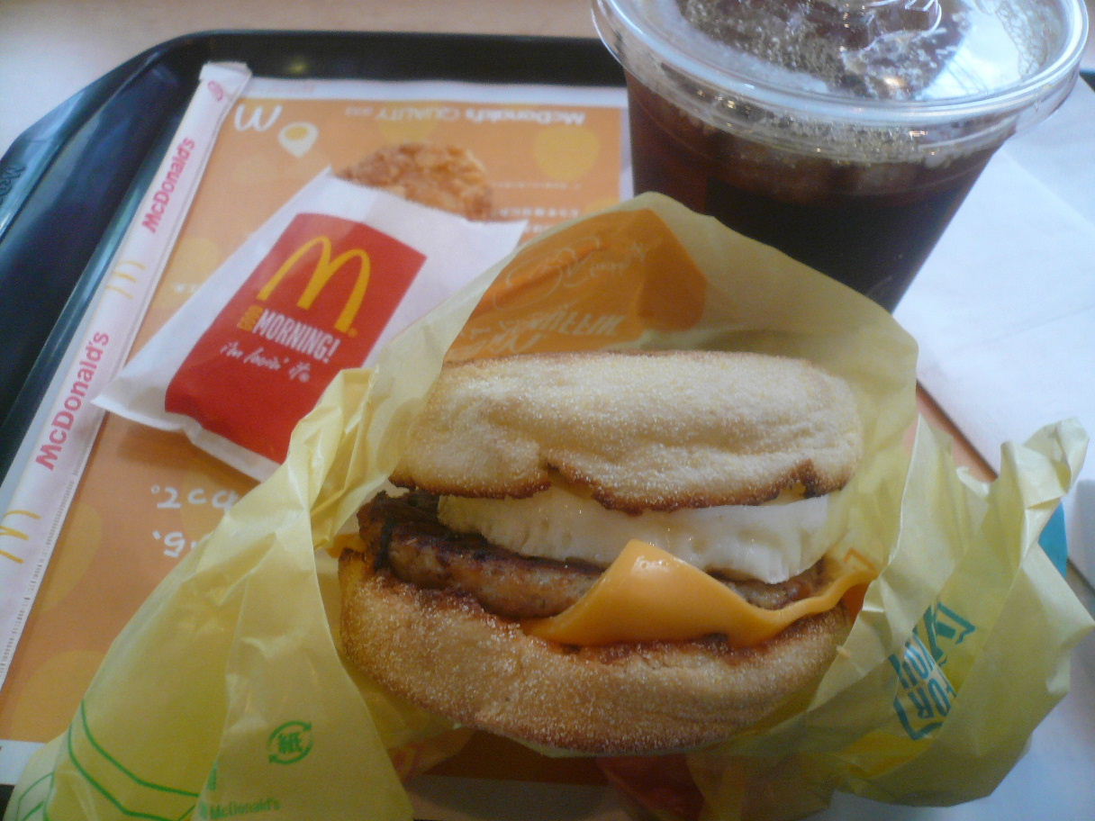 福岡市早良区西新4-7-1 092-832-1250 今日はちょっと久々にマクドナルドで朝マック。 実はJALに乗りまして、そこのレシートで朝マックメニューが無料で食べれるとのこと。 ってことで便乗。 でもね、タダで食うのはちょっと申し訳ない。 そこで少しだけプラスさせていただきました。 ソーセージエッグマフィン+プレミアムコーヒーアイス(無料)+ハッシュポテト130円。 ハッシュポテトはちょっと油っぽかったけど。 ソーセージエッグマフィンはなかなか豪華というかボリュームがありますね。 これだけでお腹一杯になりますね。 アイスコーヒーは今時のコーヒーって。 なかなか美味いですね。 特別感はないですが以前のような悲しいコーヒーではないのがいいね。 ボーナス的な朝ご飯でした。 たまにはいいでしょ? ご馳走様でした。