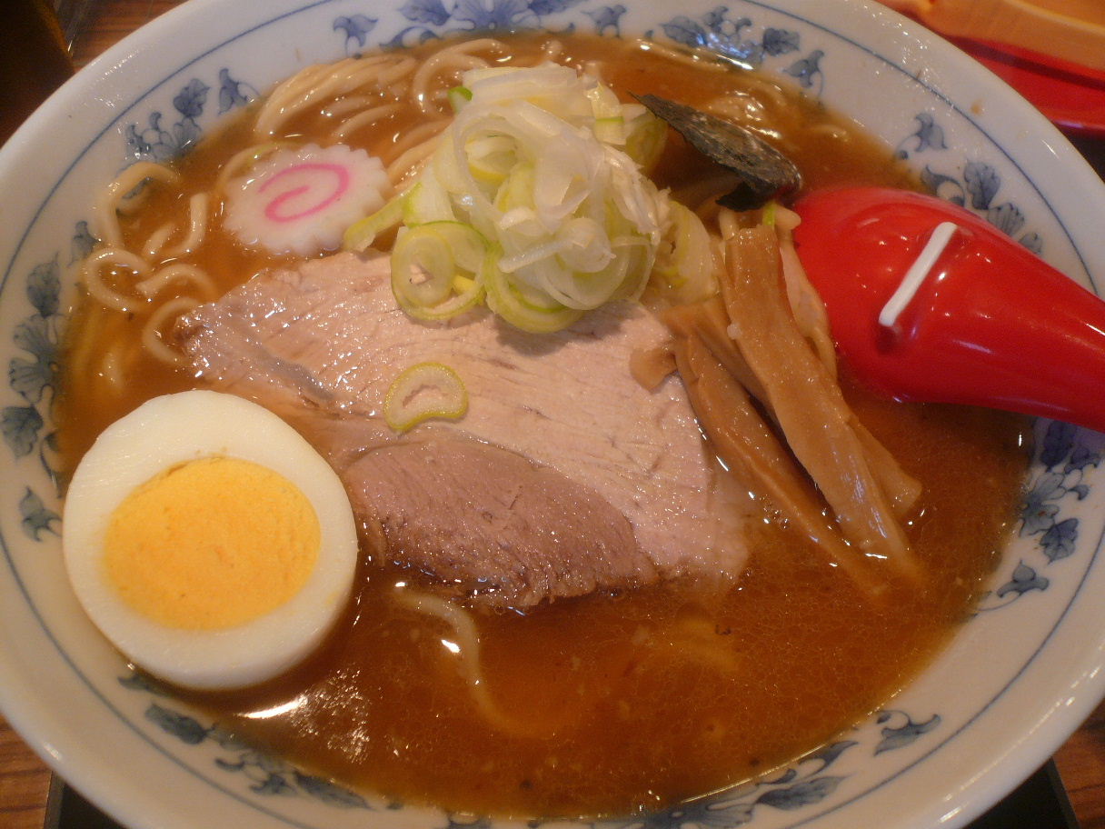 福岡市中央区大手門3-7-6 092-761-7664 今日はこちらのお店へ。 ツイッターでイベントをしていることを知ってやってきました。 まだ行ったことのないお店なのにイベントだけ? なんて思ったけどせっかくなので行ってみました。 今回のイベントは「大勝軒」さんのメニュー。 福岡には大勝軒さん系列は無いのかな? 周りの人が珍しいと言っていたし。 僕は「神田大勝軒」さんに行ったことがあったなぁ。 凄いボリュームなのに680円という値段もあって凄いなぁ、って思ったなぁ。 さて行ってみると大変な行列。 こういったイベントをしてくれる感謝が、行列として出来ているのかなぁ。 さて今回は2品のみ。 まずはこちらを。 つけ麺750円。 僕が東京の大勝軒を食べたのも随分前だけど、ちょっとビジュアルが違うね。 チャーシューはころころした角切りの記憶だったけど、こちらは大振りの一枚チャーシューだった。 しかも少し脂身というか皮の部分があったな。 それ以上にスープに違いがあった、 塩分がそこまで強くなかった。 以前の時はタレ、って感じの汁だったけど。 こちらはスープの延長線上にあるものだと思った。 お店の手直しなのか、福岡に合わせた味付けなのか、それとも今の大勝軒がそうなのか。 それ以上に僕が10キロくらい走った後なので塩分を求めていたのかは不明(苦笑)。 汁は豚の味わいが柔らかく出ていて、甘みがちょっと強く感じるね。 一体感のあるタレを美味しい麺で食べれるのは嬉しい。 麺がぷりぷりして太めで独特ですね。 よく冷やされていて汁なしでも美味い。 でもね・・・。 冷たい麺を温かい汁で食べたらあっという間に冷えてしまう。 IHが付いていて、温めることも可能ですが追いつかない状態だったなぁ。 これって、何故なんだろう? ちなみに汁はスープ割り可能。 スープの正体はわからなかったけど、汁の甘みが際だって丸くなって美味かった。 きっちりスープまで飲んで完食。 300gくらいあった麺も意外と軽く食べれるもんだねぇ。 続いて中華そば750円。 こちらも麺はかなり多く感じた。 スープはしっかりと豚の出汁が出ている感じ。 同じではないんですね。 甘みもこちらは強くなく、びしっと締まっている感じですね。 そして熱々なのも嬉しい。 こちらの方が僕は好きだなぁ。 あとメンマがしゃきっとしていてなかなか旨かったなぁ。 待っている間にお茶を出してくれたり、子供用に卵とナルト入りの小鉢をくれたりと。 こういったサービスをしてくれるとまた行きたくなります。 丁寧な接客に感謝します。 次はレギュラー商品を食べたいな。 ご馳走様でした!