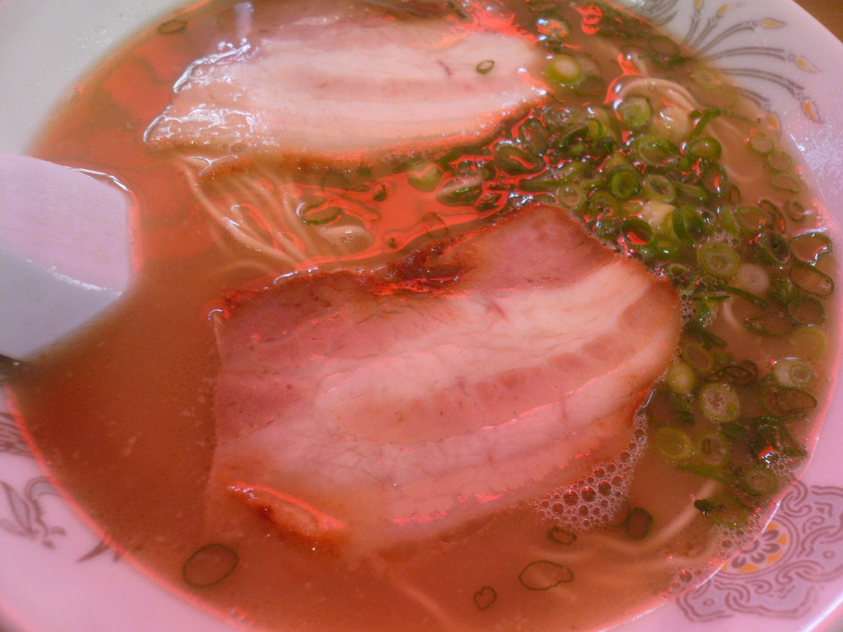 福岡市博多区下呉服町4-31 今日は福岡でも、いや全国でも有名なラーメン屋さんへ。 しかし写真は不可なのでお店の写真だけでもと。 ・・・暖簾がない。 このお店は暖簾が無くて、店が開いているかどうかは店の前にあるバケツが青ならOK。 赤ならOUTらしい。 ・・・暖簾にすればいいのに。 写真は好まないのもよくあることだしいいんだけど。 なんだかこのルールを知らないラヲタではない人は最初から相手にしない商売って好きではないな。 まぁそれは置いておいてこちらのお店はルールがいくつかあって。 先ほどの写真不可の他に。 ・携帯の扱い不可。 ・スープから飲むべし ・テーブルにある高菜を最初に食べるな。 等々。 まぁ、常識なのかも知れないですけどね。 携帯はちょっと過剰かと思いますが、まぁそれもルールですので。 でも写真が撮れたら良いなとお店の人に聞くと。 「お断りしてますので」と笑顔で返答。 あまり周りが過剰に書きすぎているのか、忙しい時間帯ではなかったのかちゃんとした反応。 ってより挨拶もそうだけど、悪いところは全くなし。 逆に好感がある接客だと思うのだけどなぁ。 ってことで注文は「普通のラーメン650円」。 白濁したスープは1センチ以上油が浮いている見た目も強そうなラーメン。 食べると、ざらついたスープが独特。 これは豚の砕いた骨の食感ですよね。 かなり濃厚で強い味なのでパンチがあります。 そしてちょっとジャンク気味に感じました。 タレがあまり強くないのですが、そこは美味く長清をしてくれている印象。 麺はかなり硬めに茹でられています。 これは福岡流でしょうか。 細麺でごつごつした食感に合わせていました。 チャーシューも結構濃厚だし面白いですね。 ってことで美味しかったです。 人気も納得。 次はキクラゲラーメンも食べてみたいな。 ご馳走様でした!