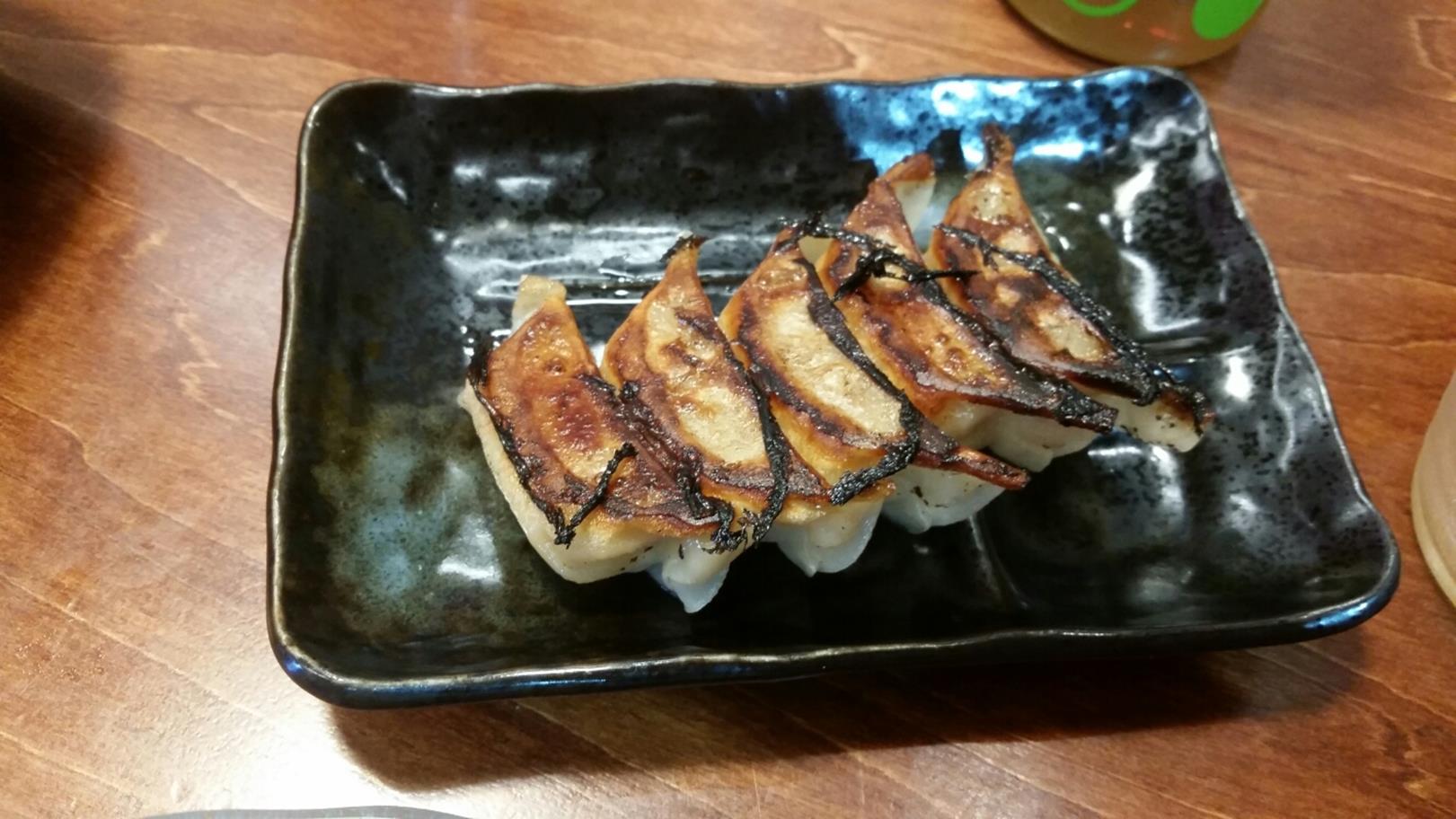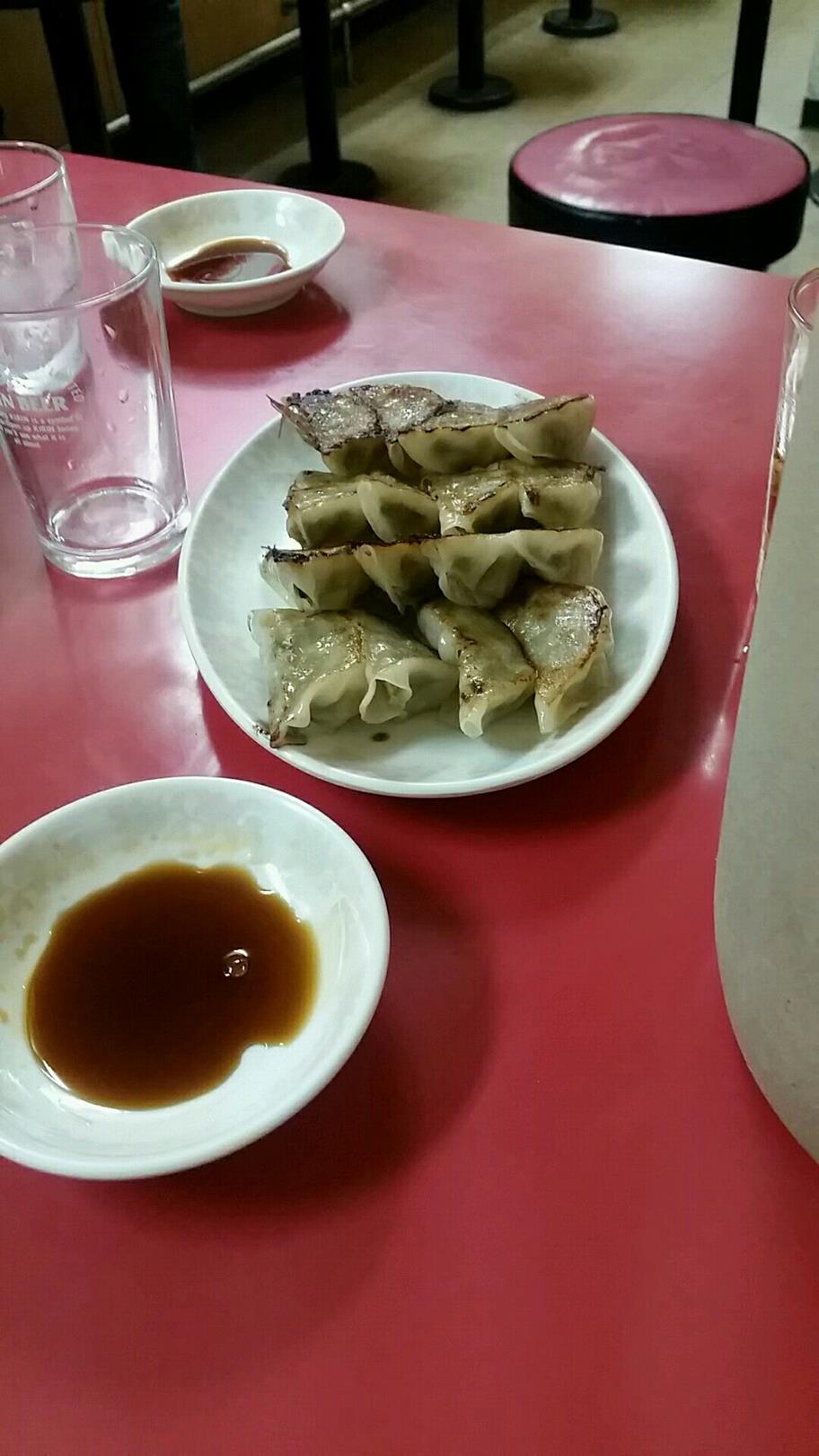 福岡市博多区古門戸町4-24 092-291-1754 今日は会社の人と呑んだ後の2軒目。 いつも豚骨ラーメンを食べさせていただいてもらっているのですが。 ちょっと違うものも食べたくなりました。 メニューを見るといろいろとあるしね。 さてこんなんを頼むことになりました。 焼き飯500円。 福神漬がたまりませんね。 パラリとした炒飯でかなりジャンクさをつけている。 これはなかなか美味いですね。 綺麗に炒まっていてこれだけでも十分満足できる一品。 焼き餃子450円。 これは2人前。 カリッと焼かれていてニンニクはあまり入っていないのかな。 ビールに合いますなぁ。 肉汁たっぷりというのがポイントですかね? ラーメンは食べなかったけどこれはこれでよかったです。 たまにはこういった食べ方もいいですね。 でも次はラーメンも食べなくては。 ご馳走様でした!