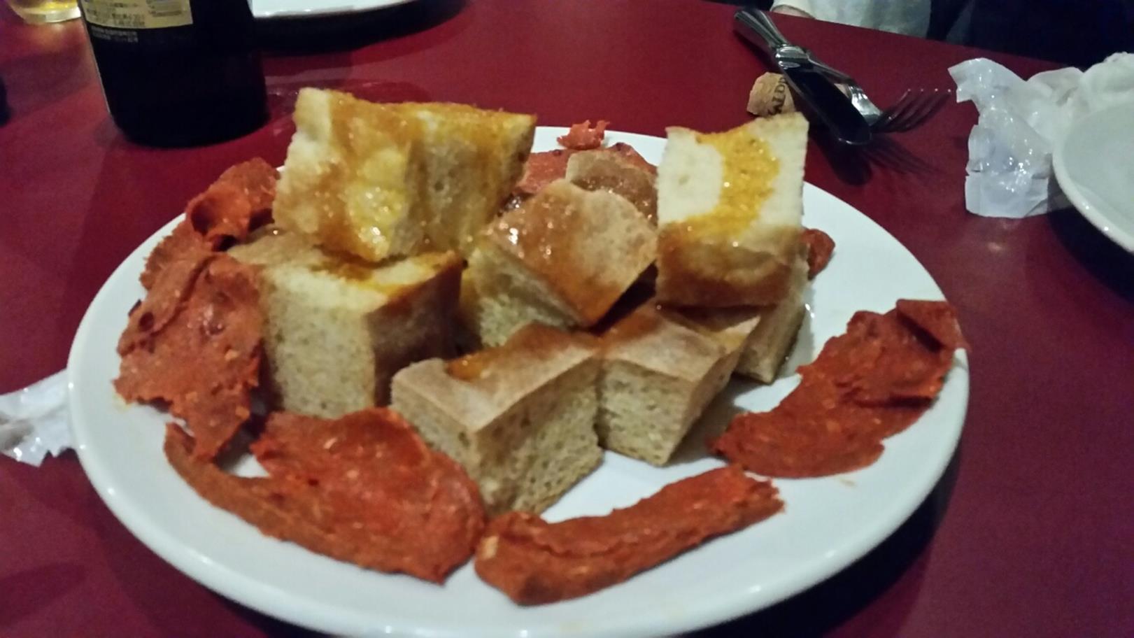 福岡市中央区大名1-2-5-8F 092-711-5903 今日は辛い物の会というものがあり、思い切って参加してみました。 僕は辛いもの強いわけではないのですが。 辛いものは辛く食べたほうが良いのではないのかな? って思っています。 こういった本格的な買いなら辛い物勝負というか辛ければ何でもいいわけではなくちゃんと美味しいものがでてくるのでは? なんて思っていってみました。 集まった人たちは40人くらいいたのではないかな? 凄い人たちばかりでいろいろと面白かったです。 そして料理はイタリアン。 どんなものがでるのかなぁ? まずはサラミハムとパン。 見た目がすでに赤いサラミはとてもソフトタイプ。 辛味はしっかりあるけど、そこまで極端ではない。 刺激は強くビールに合う感じ。 スパイスはやはり辛みの強さが目立つのでわかりにくいのですが、美味しいですね。 バーニャカウダかな? ソースには底の方にドロッとしたものがあるけど、赤い色合いはないですね。 辛い香りも強くなく酸味の香りがある。 セロリなどをつけて食べてみるとはじめは濃厚のタレの香りと強さが美味しく感じる。 でもだんだん刺激が来て強烈に感じられますね。 ちなみにだんだん辛さに麻痺をしていったとはいえ、これは一番辛かったかもしれないな。 カルパッチョ。 これも赤い色合いなどはない。 海藻まで辛みのまとわったカルパッチョは面白さがあるよね。 海藻の香りもしっかり、スパイスの香りもあるよね。 辛さの強さはやや強め。 ワインとともに頂いている人もいたけど、僕はやっぱりビールかなぁ。 こちらは蒸し豚かな。 面白いソースがたっぷりと乗っていた。 こちらは、麻痺したのかどうなのか。 辛味は弱く感じるけど、酸味とスパイスが効いた味噌のような雰囲気のソースが美味しいですね。 こちらは豚自身がしっとりとしているのでこのソースをたっぷり絡めると美味いなぁ。 面白いし、辛すぎないのがいいですね。 モツ煮込み。 色んな部位が煮込まれたイタリア風の煮込み料理。 でも絡みもある。 しかし一番辛味が弱いかな。 これはパンを残してしっかり食べたかったかも。 臭みのない煮込み料理はいいですねぇ。 パスタは2種類。 まずはショートパスタ。 こちらは唐辛子の辛さが軽めに。 たぶん麻痺してるんだろうなぁ(笑)。 少しパスタが硬くソースに馴染んでいなかったけど、これもイタリアンらしいよね。 最後はパスタ。 あさりたっぷりのパスタはグリーンソースで。 この辺りから鼻も少しおかしくなっているのか香りもわからなくなってきている(苦笑)。 あさりが軽い旨みでアクセント。 最後の締めとして面白かった。 辛い物の会なのでデザートは無し。 まぁ当然か。 呑み放題で4,000円は破格だよね。 辛い物だけでなくちゃんと味がよかったのが嬉しいね。 次は通常のものが食べたいな。 ご馳走様でした!