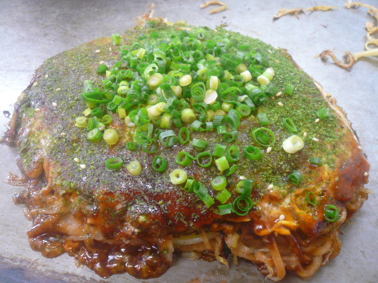 福岡市中央区天神2-3-10 092-406-7971 今日は情報をもらってこちらのお店へ。 広島式のお好み焼きを食べさせてもらえる店なんですが。 ソバに特徴があると言うことです。 ソバが普通のものではなく、唐灰麺というものらしいです。 ちゃんぽんに使われる麺の種類らしく。 風味のある鹹水らしいです。 僕は食べたことがない麺ですね。 さてお店はとても綺麗で落ち着く雰囲気。 良い予感がします。 さてまずは基本のこれを。 肉玉ソバ780円。 街のど真ん中と思えばこの値段はまだ良心的だろうか? ってよりちゃんとキャベツはたっぷり使ってくれているし。 もやしは立派な太もやしを使っていたし。 デフォルトでたっぷりネギをかけてくれるし。 そのネギが瑞々しいし。 素晴らしいですね。 キャベツはかなり細く切っている。 それをたっぷりのせてゆっくり焼いていく。 唐灰麺は袋麺でこれも塊のままほぐさずにじっくりと焼いていく。 その後ラードを引いて麺をほぐして。 豚肉は3枚分厚いのをのせてひっくり返してまたゆっくりと焼く。 そして卵を潰してお好み焼きにドッキングさせておたふくソースでできあがり。 調味料は途中で塩胡椒をかけたくらいかな? 食べるとたっぷりキャベツが甘くてとても美味しい。 しゃきっともやしの食感も入る中面白いくにっとした食感が。 聞いてみると薩摩揚げを刻んで入れているらしい。 面白いなぁ。 ラードを使っているのにあまり重たくないのも素晴らしい。 味が強くついてないのが良いのかも知れないね。 そして唐灰麺。 香ばしく焼いていてくれて少し太めの麺が面白い食感になっていますが。 香りが香ばしくなっているので逆に特徴はよくわからず。 「唐灰麺の独特の香りを楽しんで欲しい」 と言われたのですが、僕はわからなかったなぁ。 でも美味しいお好み焼きでした。 多分広島でそのままやっても流行るレベルだと思った。 本業はチャンポン屋さんで、そこが開いたお店らしいけど。 思った以上にちゃんとしている。 またここは行きたいな。 ご馳走様でした!!