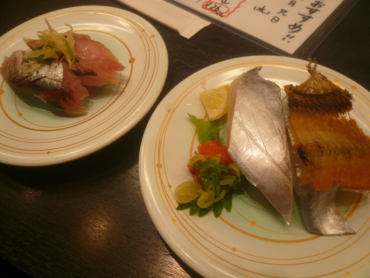 福岡市早良区小田部4-5-51 092-845-1778 今日は久々に回転寿司なぞ。 最近リニューアルをしていたこちらのお店へ行きました。 入ってみるとリニューアルしたての綺麗な雰囲気と、楽しみなメニューが書いている。 頼み方は、機械で出来るのですが。 お店の人が「いつでも注文してくださいよ」 っていってくれたので口頭でお願いしました。 こういったものを早速注文。 太刀魚126円・地鯵126円。 太刀魚は骨煎餅付きです。 嬉しいですね、こういったサービスは。 お寿司は少しシャリが硬く、甘い味付けですが悪くはありませんよ。 太刀魚は癖もなく食べやすかったです。 骨煎餅は少し硬かったですが、サービスだから文句を言うのもおかしいですよね。 鯵も臭みのない感じがありがたい。 他にもだし巻き卵やイカも悪くなかったです。 面白かったです。 次はランチで食べようかな? ご馳走様でした。