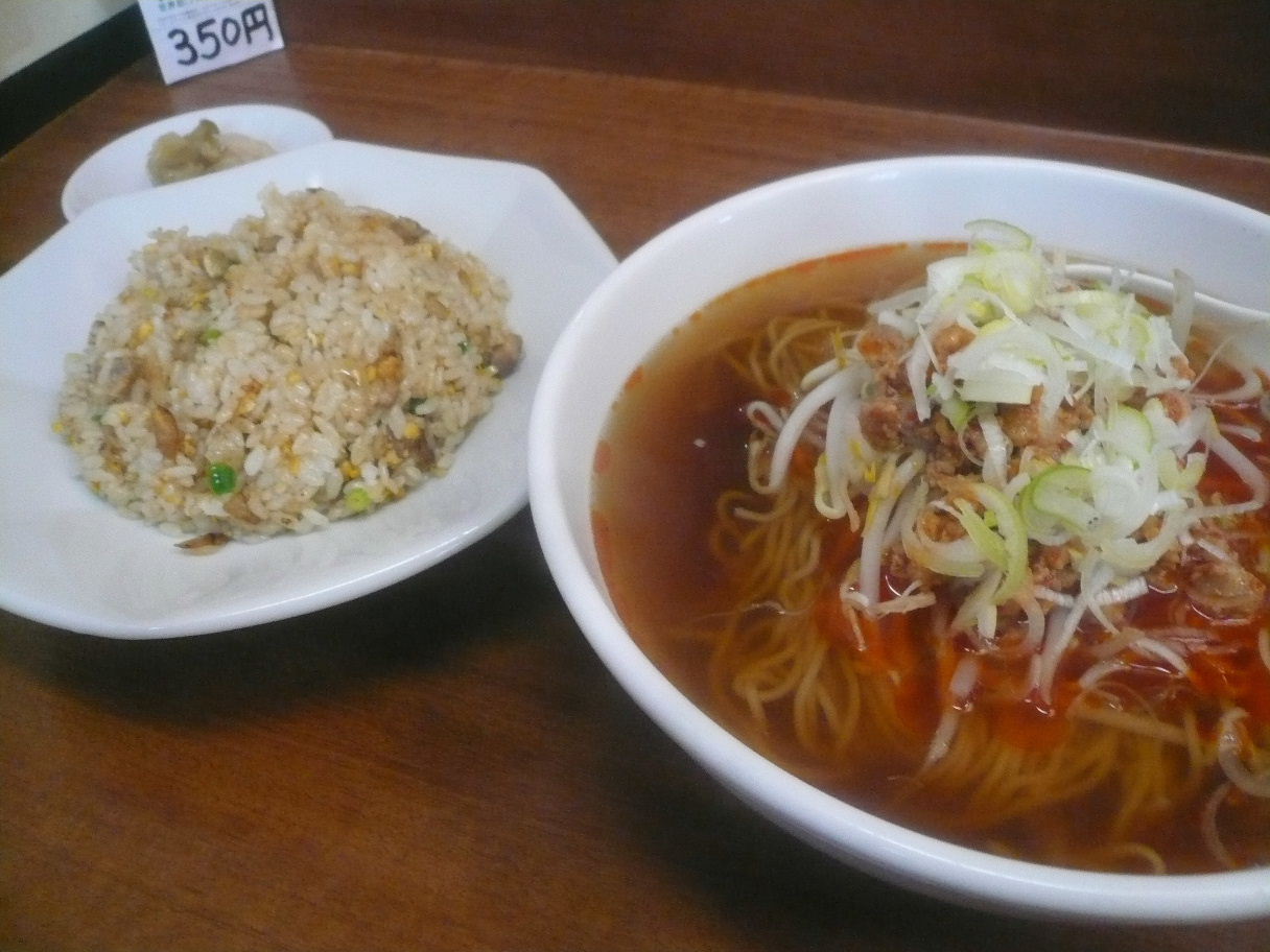 福岡市博多区須崎町9-20 092-262-8132 今日は、会社から遠くない中国料理屋さんへ。 実はここで以前歓迎会を開いていただいていて。 そのときも美味しい料理を出してくれる記憶があったのですよね。 今日も行ったら、お客さんで一杯。 素晴らしい話ですね。 お店はスタッフも全て中国の方でしょうか? 担々麺があったので「これは汁のあるタイプですか?」 って聞いても通じなかった。 「辛いです」 「美味しいですよ」 なんて答えられてもね(苦笑)。 担々麺セット800円。 担々麺とチャーハン、ザーサイのセット。 って・・・、これが担々麺? スープは醤油の中華風だし、色合いがあまりに違う。 スープは優しいタイプでやはり中国料理にある感じの油の強さはない落ち着いたスープ。 ラー油はかかっているけどあまり辛くない。 ちなみに山椒の辛さも全くないと言うかたぶん入っていない。 挽肉にしっかり味はついていて麺と絡ませながら食べると、良いお味になる。 ネギもシャキシャキと良い歯触り♪ 麺は少しぬめりが気になるけど、たっぷり入っていて嬉しい。 チャーハンは少し柔らかめでぱらっとしていないけど、こういったチャーハンも嫌いではない。 油が強くないので食べやすいしね。 お腹一杯になる量も魅力的ですし、良いお店ですね。 次は麻婆丼を食べてみたいな。 でも辛さは強くないかも・・・。 どんなんだろう? ご馳走様でした!