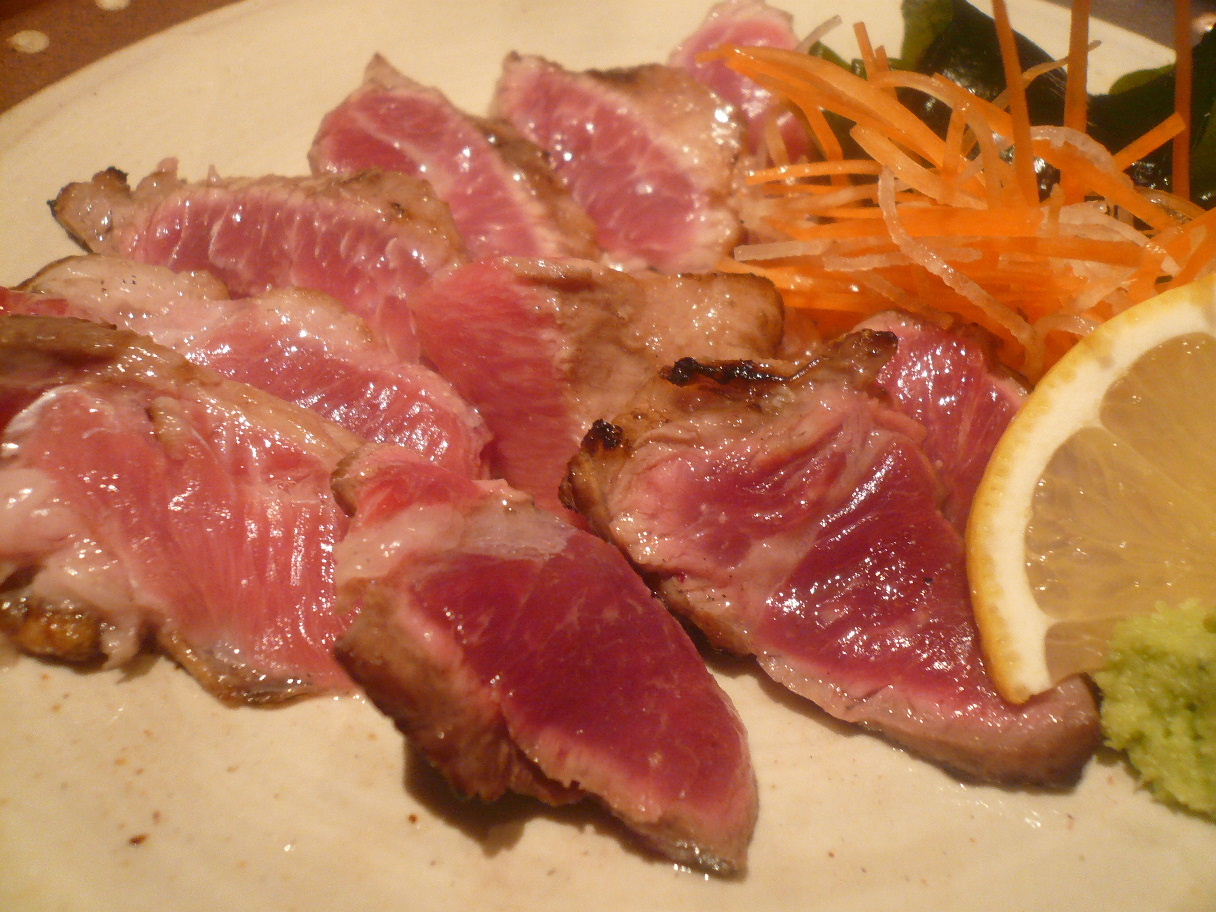 福岡市中央区高砂1-18-1 092-522-3710 今日は散々飲み倒した後にまた行ってしまったこちら。 前回も美味しいお酒と料理を頂いており、印象に残っていたんですよね。 ひょっこり行ったのですが、なんと覚えていただいていた。 こういった一つ一つが嬉しいですよね。 今回は閉店間際に行ってしまったのでお客さんは僕だけ。 贅沢だ(かなり申し訳ないですが)。 さてまずはお約束になってますこちら。 ポテトサラダ。 お約束のこちらですが、マヨネーズはあまりかかっていないね。 でも非常に甘みがあって独特。 サツマイモを使っているのではないか? なんて思えるくらい甘い。 その甘い芋の味に黒胡椒がぴしっと効いていてかなり美味い。 最近のポテトサラダの中でもトップクラスに美味かった。 これなんだと思います? 正直牛肉にしか見えないですよね。 これ、マグロです。 マグロの頬肉。 食べてみても、一瞬牛肉かと思える歯ごたえ。 すじの部分が特にそう思える。 旨味もしっかりあってこれは凄いな。 醤油だけで食べるのだけど、ほんとにこれははまるな。 オマケでつけてくれた酒盗。 ちなみにマグロでやんす。 そら旨いがな(笑)。 かなり塩辛いけど、酒が進むし。 味がしっかり美味いのが良いね。 どれも美味かったです。 お酒は店名通り熱燗で。 温め方が絶妙で、これも止まらなかった。 良いお店だなぁ。 また行きます! ご馳走様でした!!