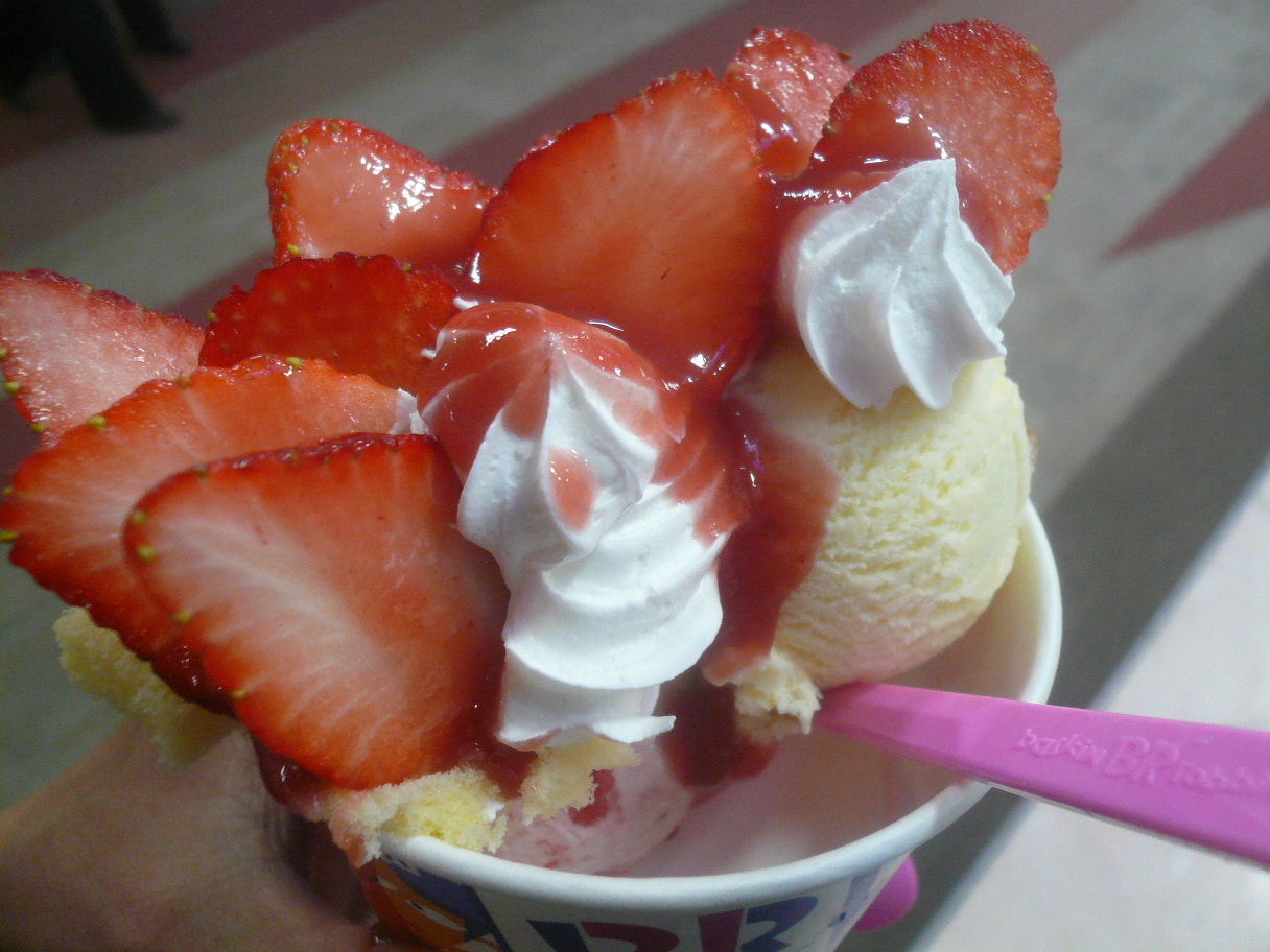 福岡市東区東浜1-1-1 092-632-0531 今日はゆめタウン(イズミ)博多の2Fにあるアイスクリームショップへ。 有名店ですが、僕はほとんど食べたことがないんですよね。 この日は娘が食べたいと言ったんで買ってあげました。 この時期にアイスですか・・・。 元気ですよねぇ。 しかしこのお店、トッピングのフルーツとかは店の中でカットしてくれて乗せてくれるんですね。 最初っからカットされたものを用意しているわけではないんですね。 さてこれを頼みました。 カップストロベリーサンデー(ダブルストロベリー)+キャラメルリボン+ストロベリーソース590円。 僕はガタガタ震えながら食べてました(笑)。 イチゴがたっぷり練り込まれたアイスとキャラメルアイス。 そこにストロベリーソースと生クリーム、さらにカットイチゴとパンケーキが乗っている。 アイスのケーキですね。 味は甘みがそこまで強くないので食べやすいですね。 フルーツがたっぷり入っているのも助かります。 なんだか食べれる(男も)アイスでした。 美味しかったです。 ご馳走様でした。